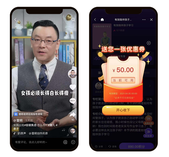 说到底知识付费其实就是流量变现的生意,但是众所周知现在流量获取越来越难!但是对于小程序来说最大的优势就是流量。对于海豚知道小程序,背靠抖音、快手这两个国民短视频APP,直接享有抖音、快手超7亿的用户,这对于知识付费创业者来说简直就是一个巨大的流量池!