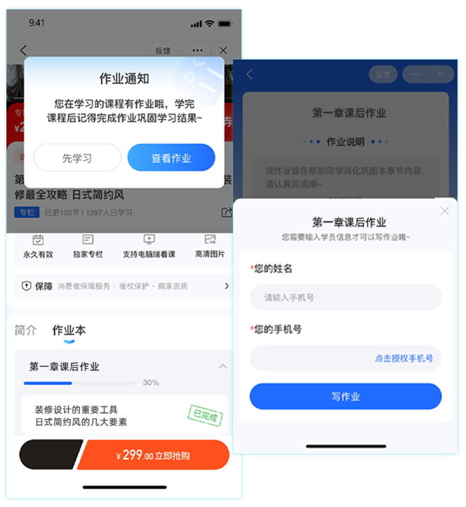 「作业本」功能为老师和学员提供了一个实时互动的平台,让老师能够在学员提交作业后立即给予反馈和指导。这种即时性的沟通不仅能迅速解决学员的问题,还能增强他们对课程的信任感和参与度。
